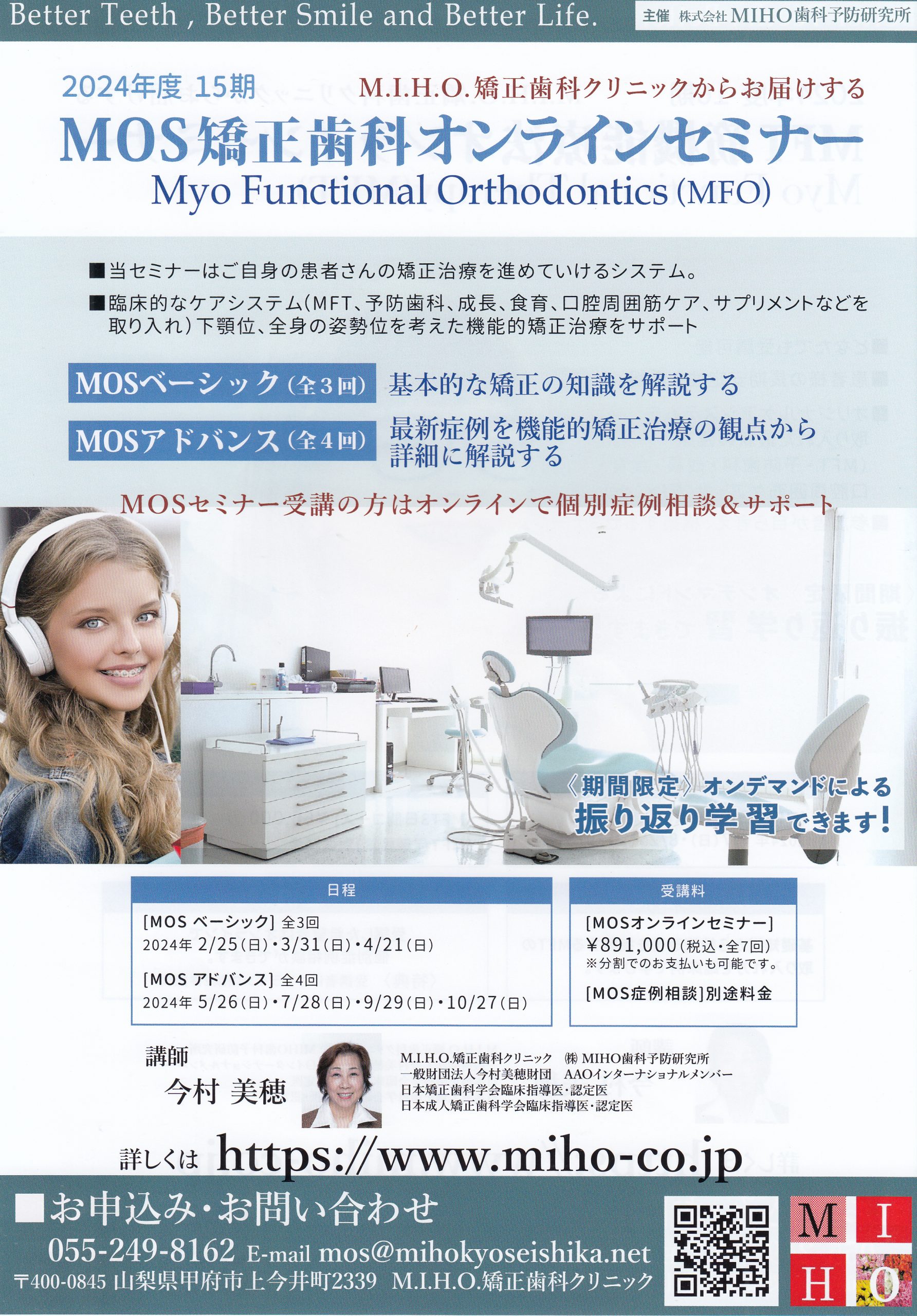 | 2024/2/25・3/31・4/21・5/26・7/28・9/29・10/27 | 2024年度15期MOS矯正歯科セミナー ▼ リーフレットはこちら! | ■Web開催 |